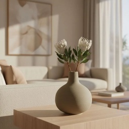 Florero Cerámica Base Redonda Beige Minimalista 13X13x15cm Beige Redondo