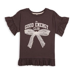 Remera Top Design Manga Corta Estampado Moño Gris T10