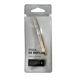 Pinza de Depilar Plateada Studio 9 Punta Dorada Inclinada x 1 un