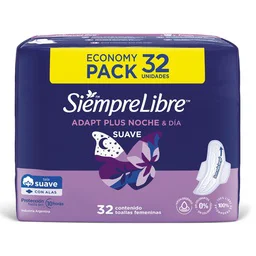 Toallas Femeninas Siempre Libre Adapt Plus Noche & Día Suave C/ Alas x32 un