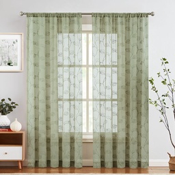Cortina de Tela Velo Nazli Hoja 140 x 220 cm Verde